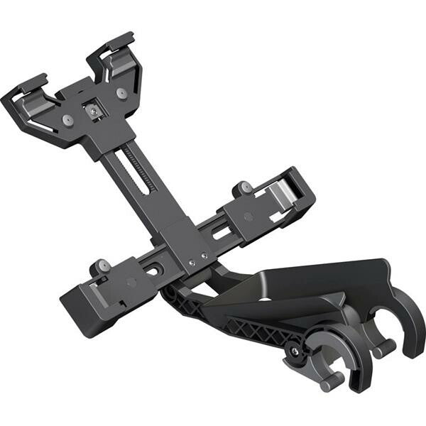 The bracket is suitable for handlebars with a diameter ranging from 26 to 35 mm and is adjustable to different tablet sizes, including length of 182 to 267 mm, width of 112 to 197 mm and maximum thickness of 13 mm.