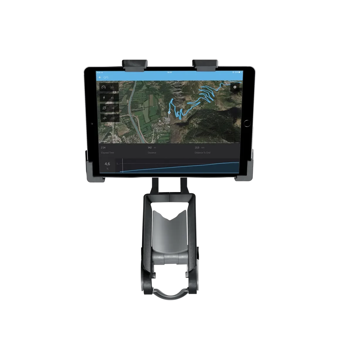 See your screen without sweating on it. This bracket securely attaches your tablet to your handlebar at an optimal distance, so you can access apps or entertainment while you ride.