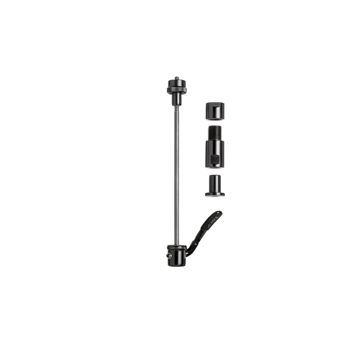 - Išsamus adapterių rinkinys: Į komplektą įeina abi ašys, todėl galite pasirinkti tinkamą derinį konkrečiam dviračiui ir užtikrinti saugų bei stabilų tvirtinimą.
