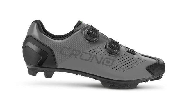 Dviratininkų batai Crono CR2 – tai išlengvintas, bet tuo pačiu itin tvirtas modelis, su dviguba užsegimo sistema BOA L6, kuri leis dar lengviau ir greičiau reguliuoti batų apgludimą prisitaikant prie kintančių poreikių. Išlengvintas išorinis audinys sustiprintas pirštų ir kulno dalyje siekiant apsaugoti nuo smūgių, subraižymų ir greito nusidėvėjimo. Gausus ventiliacinių angų kiekis efektyviai cirkuliuoja orą šalindamas perteklinę šilumą ir drėgmę bei užtikrindamas didesnį komfortą intensyvioms treniruotėms. CarboComp padas užtikrina stabilumą ir optimalų sukibimą su įvairiais paviršiais, o šešių sluoksnių austinis anglies pluoštas užtikrina lengvumą ir efektyų energijos perdavimą minant.