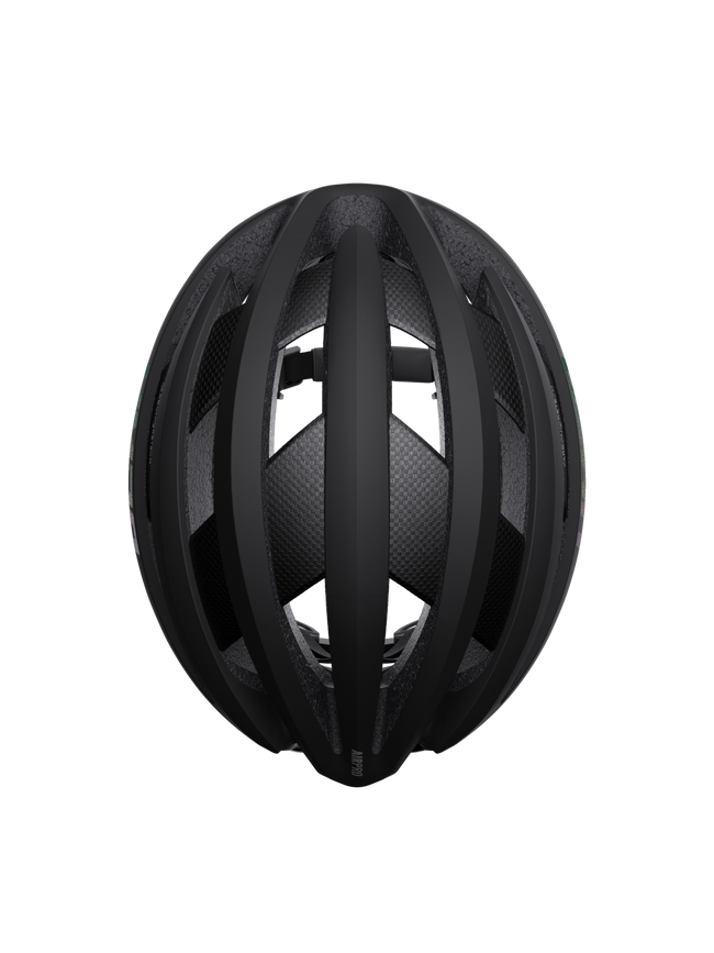 - Trigubo apvalkalo technologija pagamintas aerodinamiškas šalmas su įformuotu anglies pluoštu
