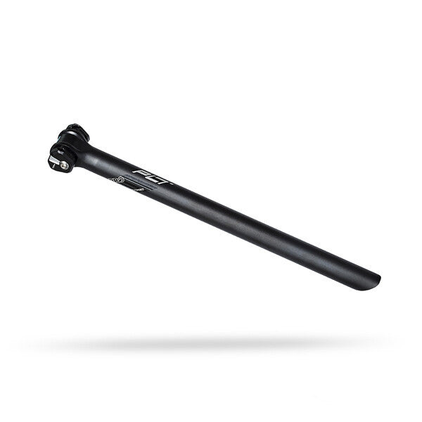 Designed to provide you with a better sports’ bicycle experience the PRO PLT Seatpost offers alloy robustness and reliability to road cyclists, in two diameters. Available in either 27.2- or 31.6-millimetre diameters it measures 400-millimetres in length and has a minimum weight of 265-grams, for the 27.2 version. The PLT Seatpost boasts Shimano Di2 battery compatibility and a 3D forged AL-7050 alloy construction. Like all PRO seatposts it features an innovative 1 bolt clamping system, which provides a wide range of saddle angle adjustments.