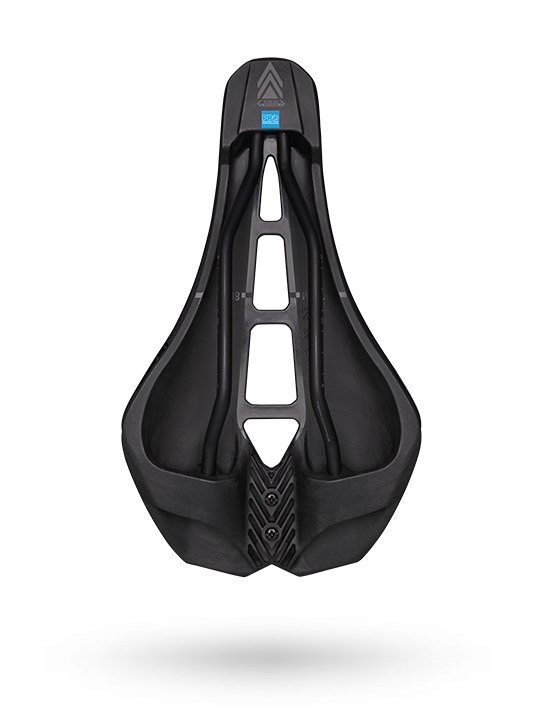 Designed to provide you with a better sports’ bicycle experience the PRO Stealth Performance LTD Saddle is intended for competitive road cyclists who maintain an aggressive, aerodynamic, position on the bike. A carbon reinforced polymer base, set upon stainless-steel rails and covered by PU padding, topped by a smooth PU cover produces a stiff performance saddle; available in 142- and 152-millimetre-wide versions. Its wide, stub, nose and a broad anatomic fit recess, with its iconic triple bridge design, ensure that flexible riders can tilt from the pelvis into a deep, pursuit style, position. While ensuring that they do not experience discomfort from any impingements on blood vessels or nerves running though the perineal region.