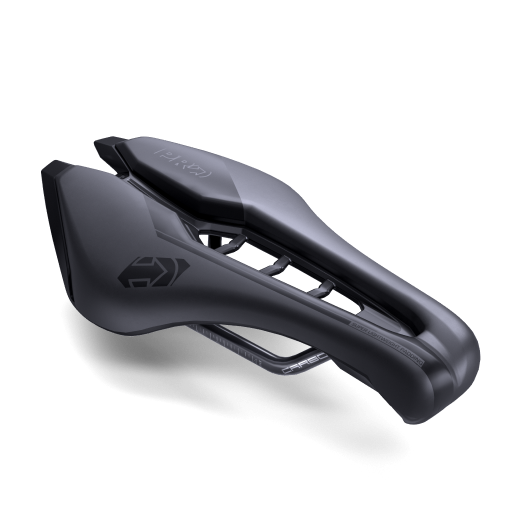Triathletes and time trial riders typically require a forward, aerodynamic, position on the saddle. The PRO TSA 1.1 TT/Tri Saddle facilitates this position. It has a short length, carbon reinforced base, which is set on carbon rails and features lightweight EVA padding to further reduce the saddle’s overall weight. A broad anatomic fit cut-out and strategically variances in padding density helps to reduce saddle pressure on soft tissue while maintaining an aerodynamic position on the bike throughout a time trail or a triathlon bike leg. It is only available in a 132 millimeter width and weighs just 170 grams.