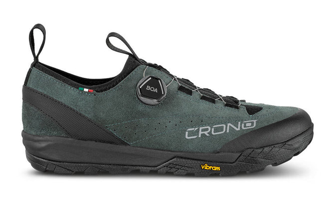 Dviratininkų batai Crono CD1 su SPD tvirtinimu, pagaminti iš vandeniui atsparios bei kvėpuojančios verstos odos. Viduje esantis elastingas audinys Lycra puikiai priglunda užtikrindamas didesnį komfortą. Užsegimas L6 BOA Fit System leis patogiai ir greitai reguliuoti batų apgludimą efektyviai prisitaikant prie kintančių poreikių. Išorinis audinys sustiprintas pirštų ir kulno dalyje siekiant apsaugoti nuo smūgių, subraižymų ir greito nusidėvėjimo. VIBRAM WOLFTRAX padas garantuoja puikų sukibimą su įvairiais paviršiais, todėl tai idealus pasirinkimas ieškantiems kompromiso tarp efektyvaus pedalų minimo ir komforto vaikštant.