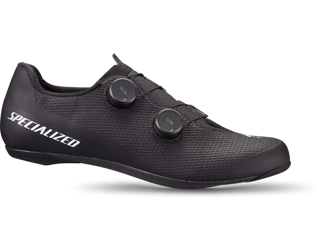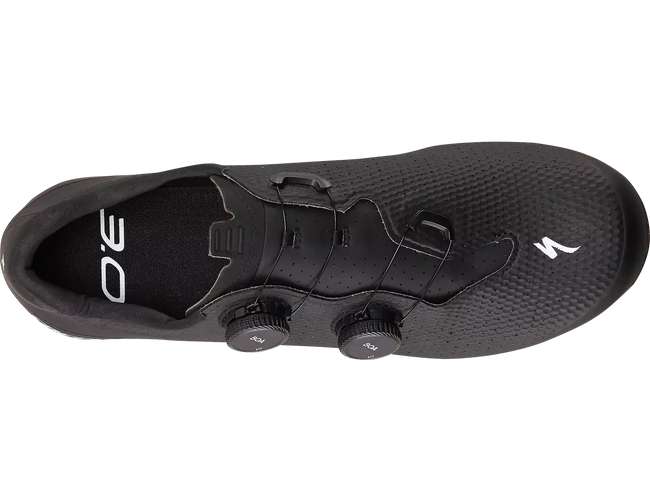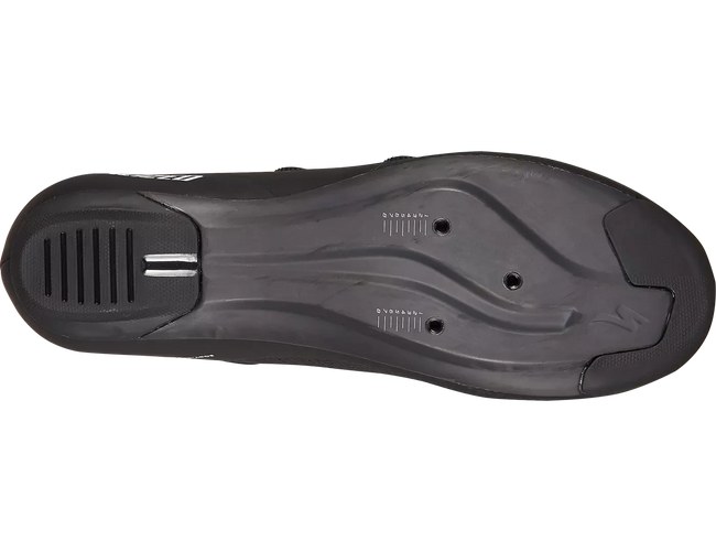 Carbon Plate: The Torch 3.0 features a lightweight, unidirectional carbon plate that enables balanced stiffness throughout the shoe, all while using less material, thus saving weight and ensuring efficient power transfer, mirroring its S-Works counterpart. Additionally, large rubber grips on the outsole of the toe and heel provide a stable, grippy platform for a seamless transition when pushing off the pavement to clip in or coming to a stop at a traffic light.