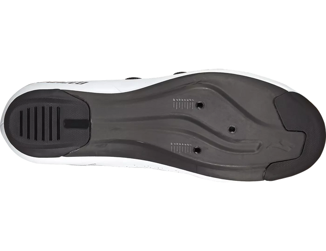 Carbon Plate: The Torch 3.0 features a lightweight, unidirectional carbon plate that enables balanced stiffness throughout the shoe, all while using less material, thus saving weight and ensuring efficient power transfer, mirroring its S-Works counterpart. Additionally, large rubber grips on the outsole of the toe and heel provide a stable, grippy platform for a seamless transition when pushing off the pavement to clip in or coming to a stop at a traffic light.