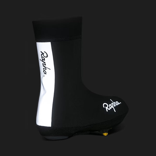 Avoid getting cold feet on your winter rides with our all-rounder cold weather overshoes. Made of a 3-layer laminate fabric with a waterproof PU coating and fully taped seams, the Winter Overshoes feature a fully waterproof construction. Inside, there’s a brushed fleece lining for added insulation. Designed to be pulled on before your shoes, the overshoes feature a velcro closure at the bottom for a stable, secure closure. The sole panel is reinforced with Kevlar for durability when walking around, while the natural stretch of the material creates a close fit that hugs the foot and eliminates flapping. Complete with signature Rapha styling, the overshoes are finished with a reflective logo and rear stripes for improved visibility in low light conditions.