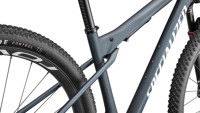 The Epic World Cup’s 75mm of rear travel delivers control and capability of a much longer travel bike. Because it’s designed to be ridden at or close to topped-out, it yields the same positive travel as a 100mm travel bike set up with 25% sag. To further optimize suspension performance, the Specialized Ride Dynamics team tuned the spring-rate to be relatively flat through the mid-stroke to handle the majority of bump forces like a longer travel bike. Due to its large size, the custom Mega Jounce Bumper is an “industry first” and plays a crucial role in smoothly managing bottom-out on the biggest impacts.