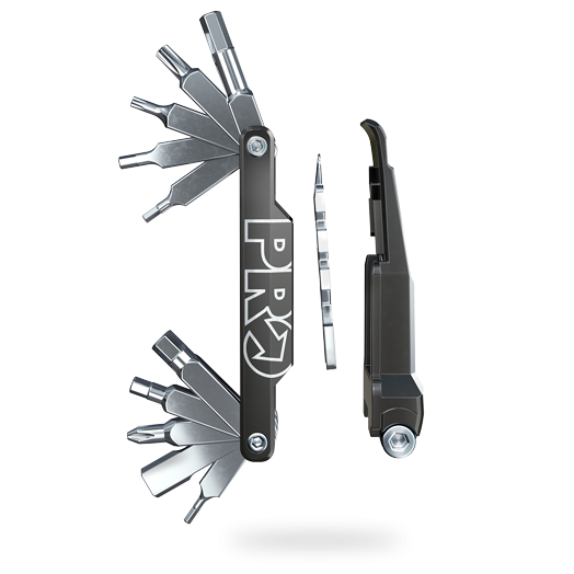 Upgrade and outperform your abilities to deal with mid-ride mechanicals with the PRO Mini Tool Performance 22 Function. It has, as the name suggests, 22 functions including all the Allen, Torx, screwdriver and spoke wrench keys you are likely to need when repairing a mid-ride mechanical. It also boasts a 12-speed compatible chain tool and an integrated tyre lever. All of this is combined in a compact, alloy mini tool which can be houses in a saddle bag, a storage bottle, or in the pocket of your riding jersey.