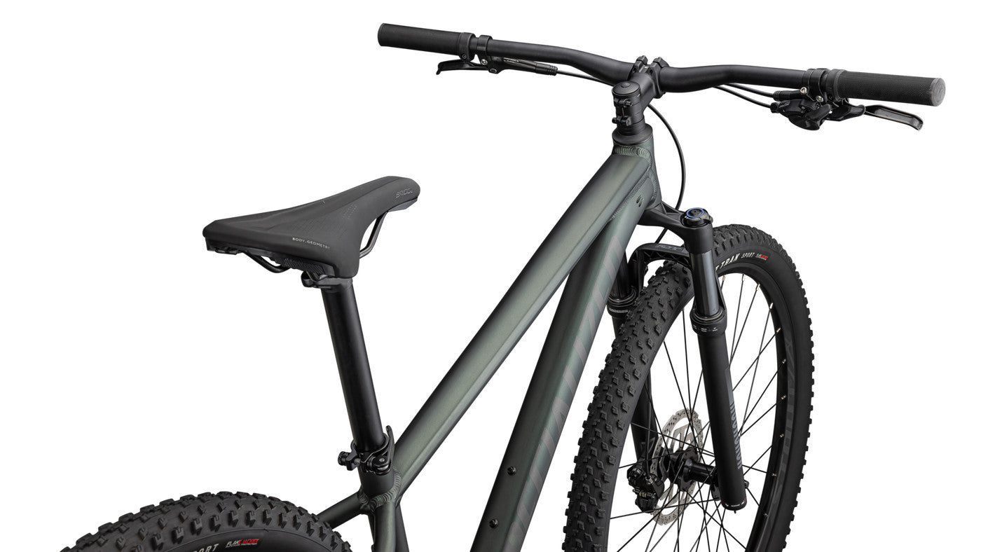 - A heart of gold, presented in our lightweight yet durable Premium A1 Aluminum, the Rockhopper’s butted aluminum frame features hydroformed top and downtubes to keep weight low and strength high, all while providing increased standover clearance, slick internal cable routing, and dropper-post compatibility.