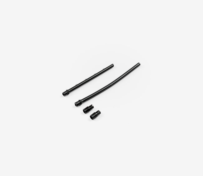 Rear derailleur hanger and rear brake hose cableguide tubes between the front triangle and the swingarm.