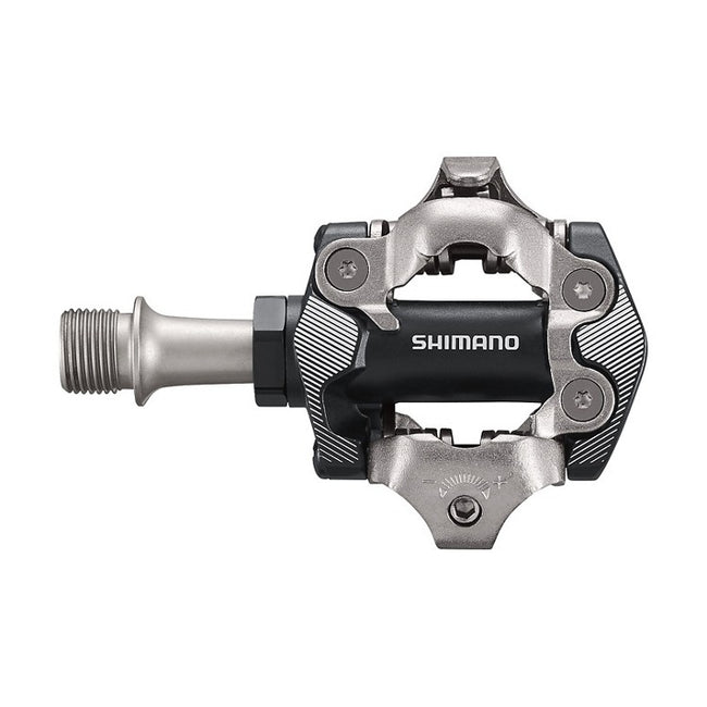 SHIMANO's DEORE XT PD-M8100 pedal features a stiff and lightweight design for efficient XC pedaling. Wider edge-to-edge contact points offer more efficient power transfer and strategic pedal body design enhances mud shedding.