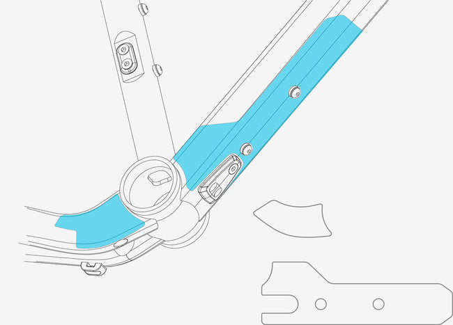 Transparent adhesive protectors kit for the right chainstay and the downtube on Terra Hydro 2022 frames.