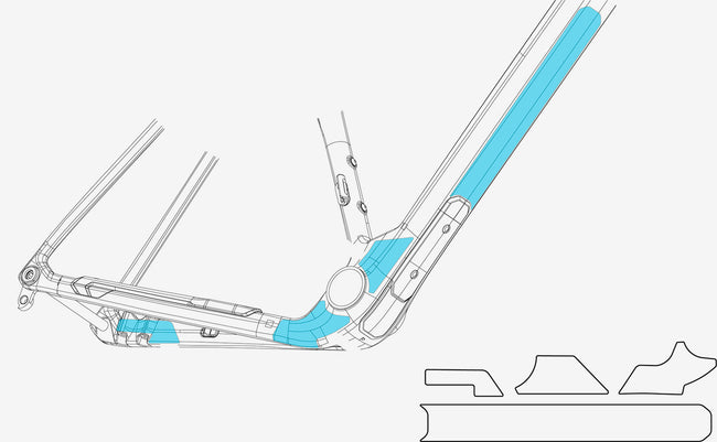 Adhesive transparent protector kit for the chainstays and downtube on Terra OMR 2022 frames.