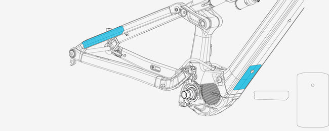 Downtube and right seatstay adhesive transparent protector kit for Rise Hydro 2022 frames.
