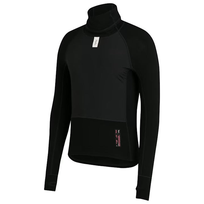 The Deep Winter Windblock Base Layer is designed for your coldest rides, locking body heat in and repelling the cold. Made from two merino-rich fabrics of different weights, this base layer balances insulation and breathability. The heavier merino fabric is positioned on the leading edges of the collar and the arms while the chest panel is made of a windproof material for cold weather protection. The back panel is made of a lighter material to allow excess body heat to escape and prevent overheating during efforts. The sleeves have a two-piece construction to create a more comfortable shape when riding, and are also cut long and finished with thumb loops so they can be tucked securely into gloves. The high collar is designed to fit under a helmet and features a ‘frogman’ face which can be worn over the mouth or under the chin depending on conditions. The collar also features a reflective stripe at the neck to provide visibility in low-light conditions.