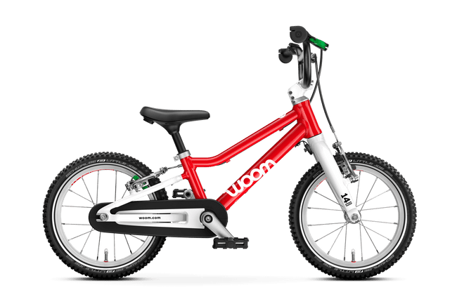 Inovatyvus ir itin išlengvintas vaikiškas dviratis Woom 2 su 14'' dydžio ratais.